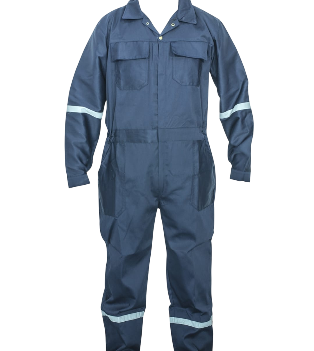 Combinaison de travail bleu marine, spécialement conçue pour offrir confort et liberté de mouvement tout au long de la journée. Dotée de bandes rétro-réfléchissantes sur les bras et les jambes, elle garantit une meilleure visibilité et renforce votre sécurité sur le lieu de travail.